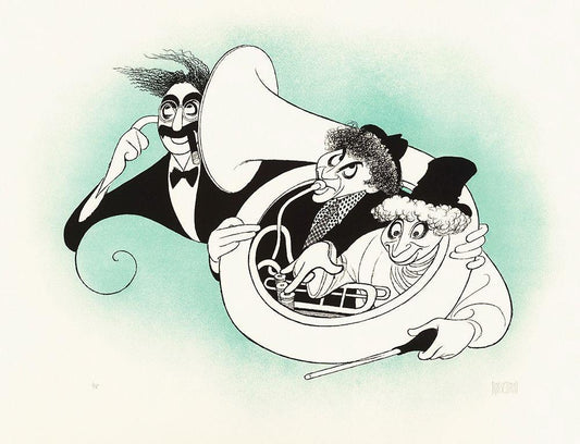 Marx Brothers - Cartoon - Tuba White Modern Wood Framed Art Print with Double Matting by Hollywood Photo Archive