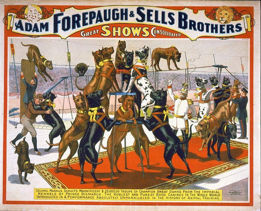 Adam Forepaugh And Sells Brothers Champion Great Danes White Modern Wood Framed Art Print with Double Matting by Hollywood Photo Archive