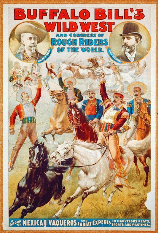 Buffalo Bills Wild West And Congress Of Rough Riders Of The World - A Group Of Mexican Vaqueros And White Modern Wood Framed Art Print with Double Matting by Hollywood Photo Archive