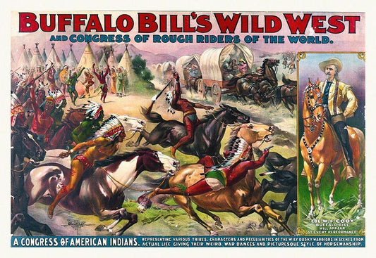 Buffalo Bills Wild West, Col. W.F. Cody White Modern Wood Framed Art Print with Double Matting by Hollywood Photo Archive