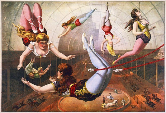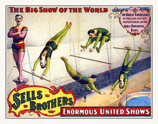 Sells Brothers Enormous United Shows - The Great Costellos - On The Aerial Horizontal Bars White Modern Wood Framed Art Print with Double Matting by Hollywood Photo Archive