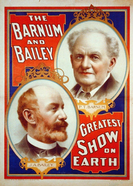The Barnum and Bailey Greatest Show On Earth - Portraits Of P.T. Barnum and J.A. Bailey - 1897 White Modern Wood Framed Art Print with Double Matting by Hollywood Photo Archive