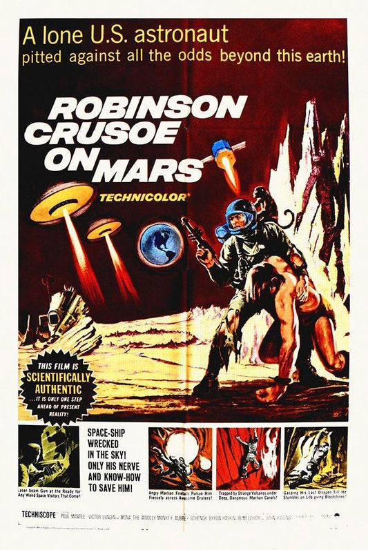 Robinson Crusoe On Mars - Dramatic Scenes White Modern Wood Framed Art Print with Double Matting by Hollywood Photo Archive