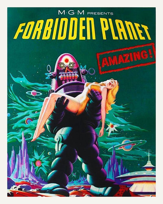Forbidden Planet White Modern Wood Framed Art Print with Double Matting by Hollywood Photo Archive