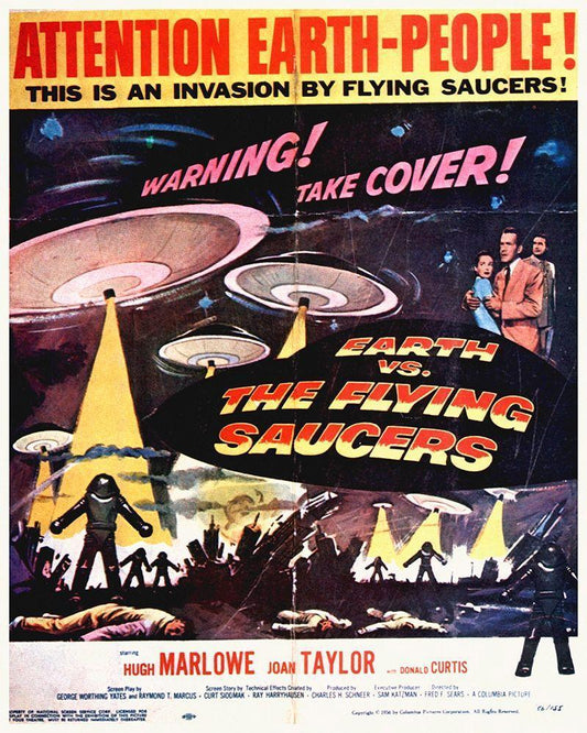 Earth Vs The Flying Saucers White Modern Wood Framed Art Print with Double Matting by Hollywood Photo Archive