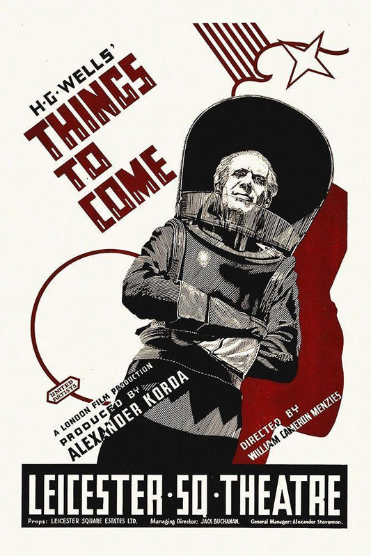 H.G. Wells - Things To Come - Spot Color White Modern Wood Framed Art Print with Double Matting by Hollywood Photo Archive
