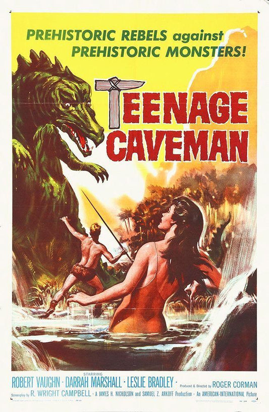 Teenage Caveman White Modern Wood Framed Art Print with Double Matting by Hollywood Photo Archive