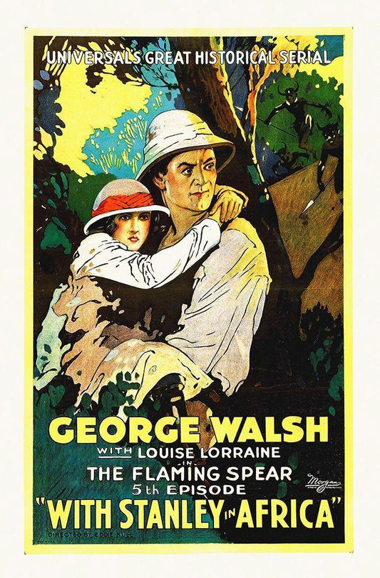 With Stanley In Africa White Modern Wood Framed Art Print with Double Matting by Hollywood Photo Archive