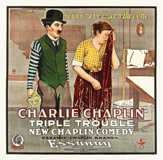 Charlie Chaplin, Triple Trouble White Modern Wood Framed Art Print with Double Matting by Hollywood Photo Archive