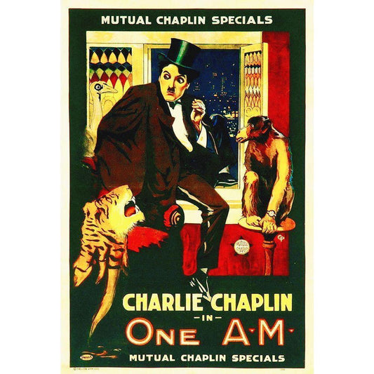 Charlie Chaplin - One A.M., 1916 Gold Ornate Wood Framed Art Print with Double Matting by Hollywood Photo Archive