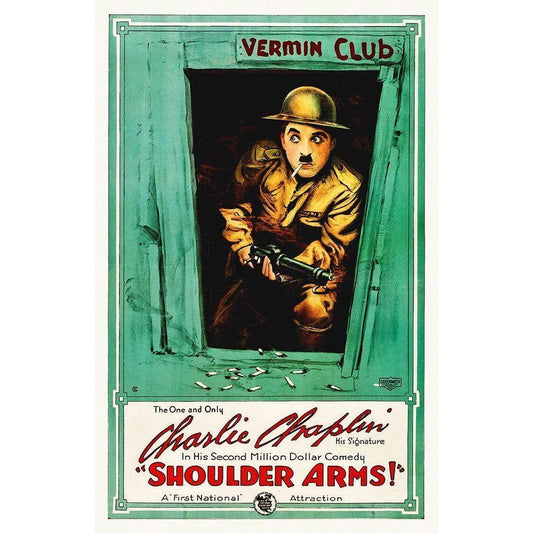 Charlie Chaplin - Shoulder Arms, 1918 Gold Ornate Wood Framed Art Print with Double Matting by Hollywood Photo Archive
