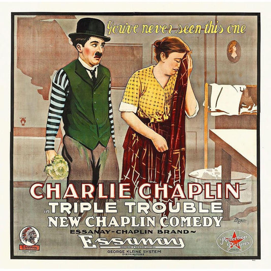 Charlie Chaplin, Triple Trouble Gold Ornate Wood Framed Art Print with Double Matting by Hollywood Photo Archive