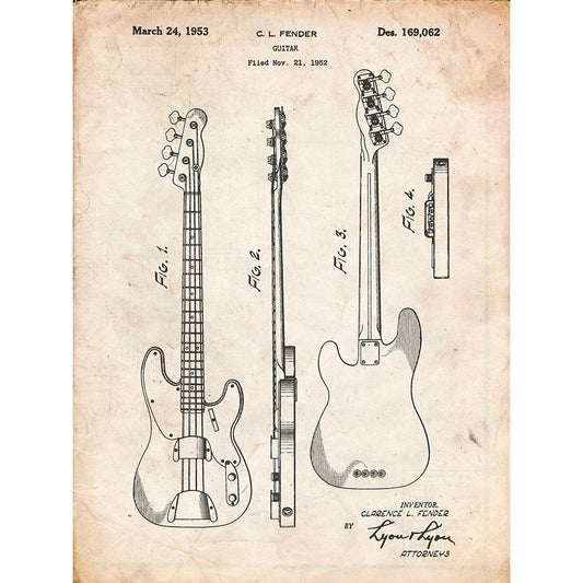 PP8-Vintage Parchment Fender Precision Bass Guitar Patent Poster Gold Ornate Wood Framed Art Print with Double Matting by Borders, Cole