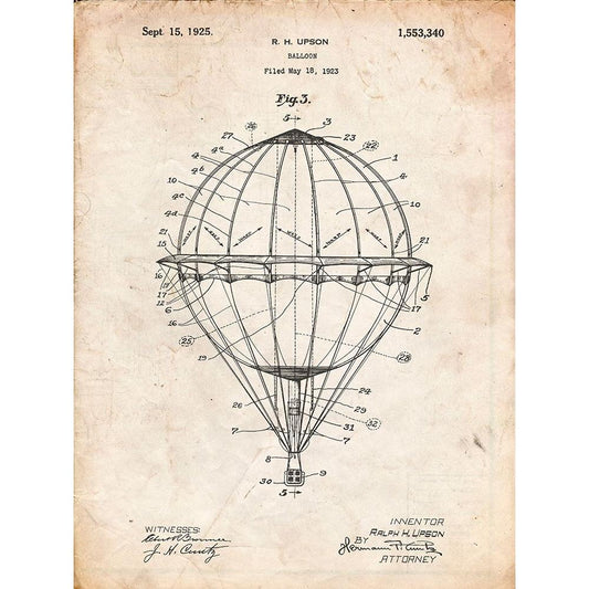 PP36-Vintage Parchment Hot Air Balloon 1923 Patent Poster Gold Ornate Wood Framed Art Print with Double Matting by Borders, Cole