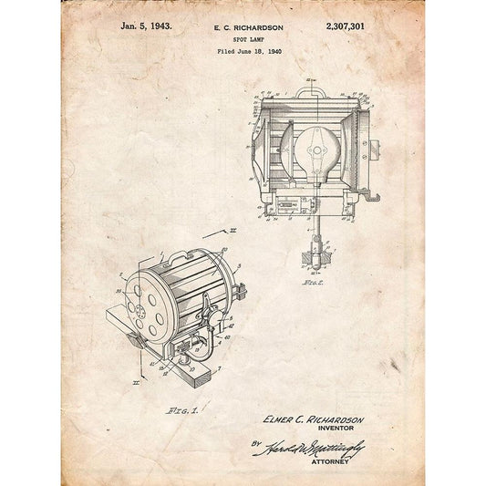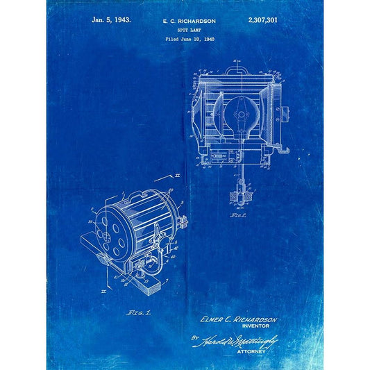 PP387-Faded Blueprint Movie Set Lighting Patent Poster Gold Ornate Wood Framed Art Print with Double Matting by Borders, Cole