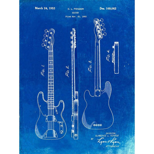 PP8-Faded Blueprint Fender Precision Bass Guitar Patent Poster Gold Ornate Wood Framed Art Print with Double Matting by Borders, Cole