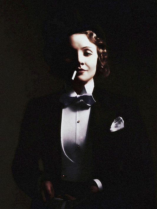 Marlene Dietrich in Top Hat - Tinted White Modern Wood Framed Art Print with Double Matting by Hollywood Photo Archive