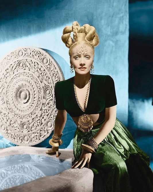 Marlene Dietrich - Golden Earrings White Modern Wood Framed Art Print with Double Matting by Hollywood Photo Archive
