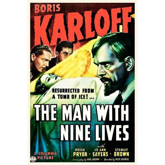 The Man With Nine Lives Black Modern Wood Framed Art Print by Hollywood Photo Archive