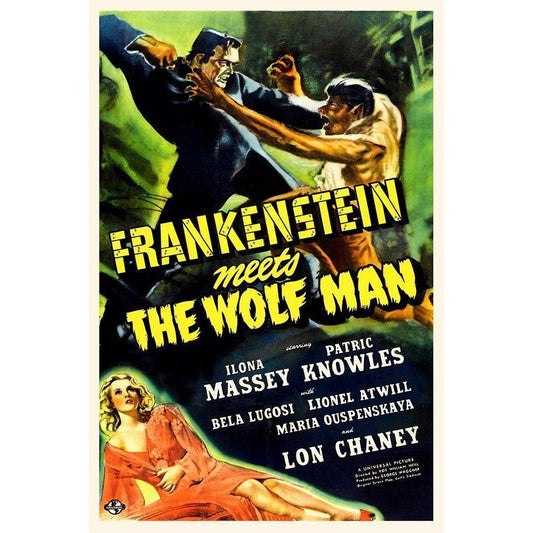 Frankenstein vs Wolfman Black Modern Wood Framed Art Print by Hollywood Photo Archive