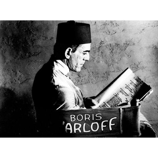 Boris Karloff - Reading a Script Black Modern Wood Framed Art Print by Hollywood Photo Archive