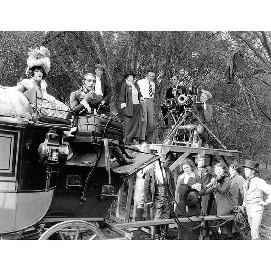 Rudolph Valentino behind the scenes in Beyond the Rocks Black Modern Wood Framed Art Print by Hollywood Photo Archive