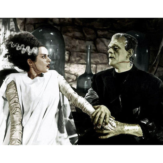 Bride of Frankenstein - Boris Karloff and Elsa Lanchester Black Modern Wood Framed Art Print by Hollywood Photo Archive