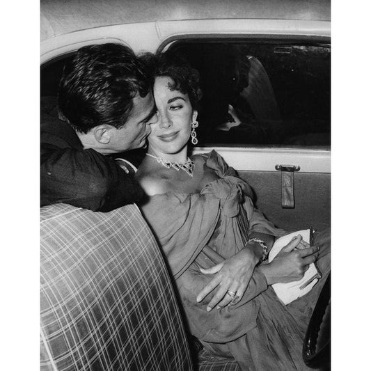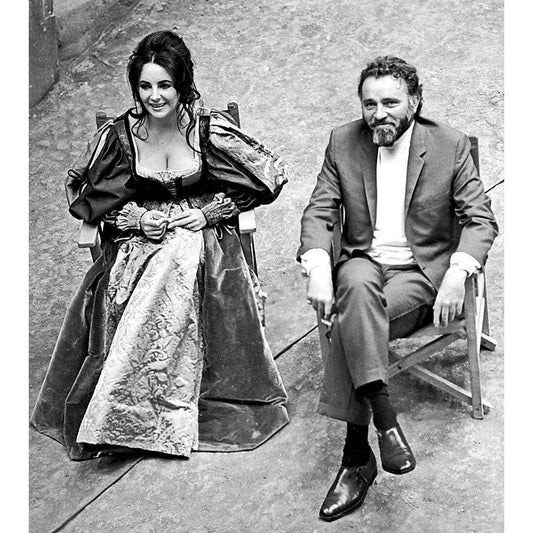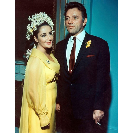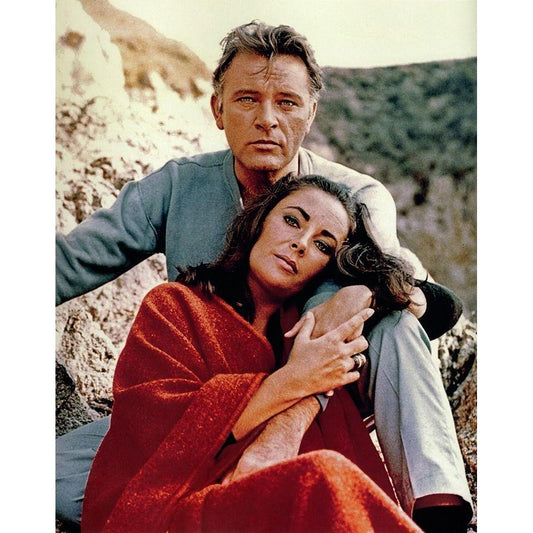 Elizabeth Taylor and Richard Burton in 1964 Black Modern Wood Framed Art Print by Hollywood Photo Archive