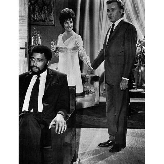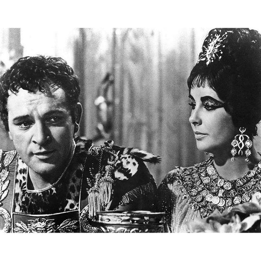 Elizabeth Taylor and Richard Burton in Cleopatra Black Modern Wood Framed Art Print by Hollywood Photo Archive