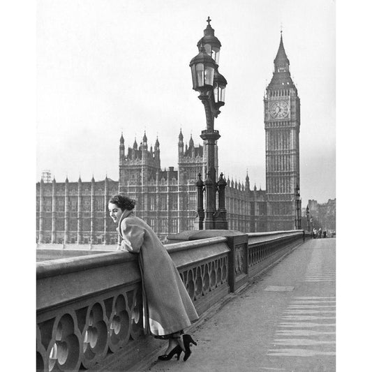 Elizabeth Taylor in London Black Modern Wood Framed Art Print by Hollywood Photo Archive