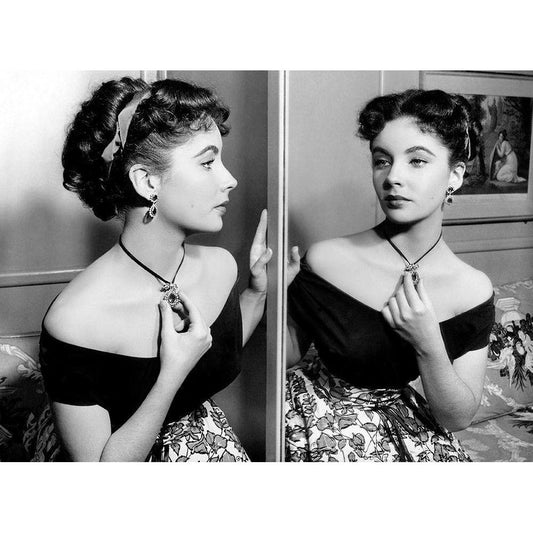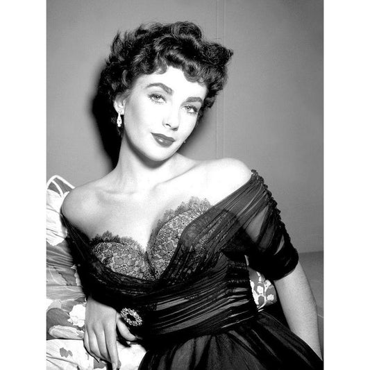Elizabeth Taylor Black Modern Wood Framed Art Print by Hollywood Photo Archive