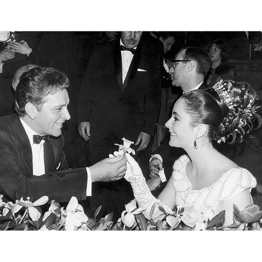 Elizabeth Taylor and Richard Burton at the Oscars Black Modern Wood Framed Art Print by Hollywood Photo Archive