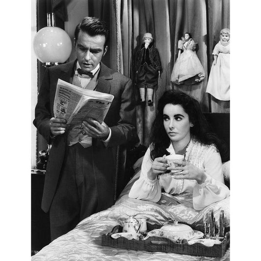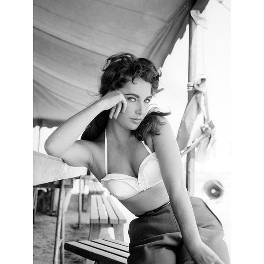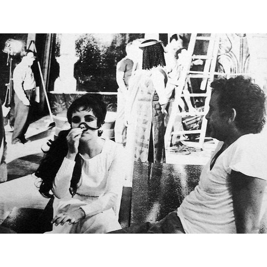 Elizabeth Taylor behind the scenes Cleopatra Black Modern Wood Framed Art Print by Hollywood Photo Archive