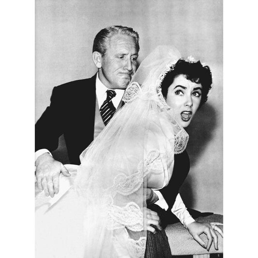 Father of the Bride - Elizabeth Taylor and Spencer Tracey Black Modern Wood Framed Art Print by Hollywood Photo Archive
