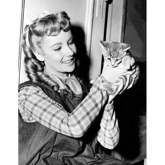 Elizabeth Taylor with kitten Black Modern Wood Framed Art Print by Hollywood Photo Archive