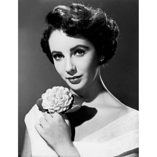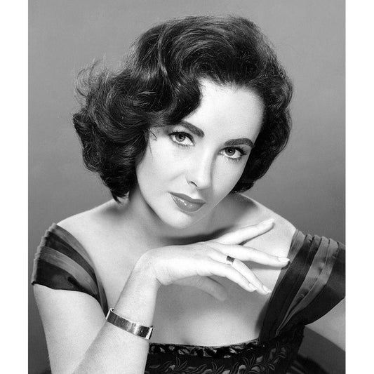 Elizabeth Taylor Black Modern Wood Framed Art Print by Hollywood Photo Archive