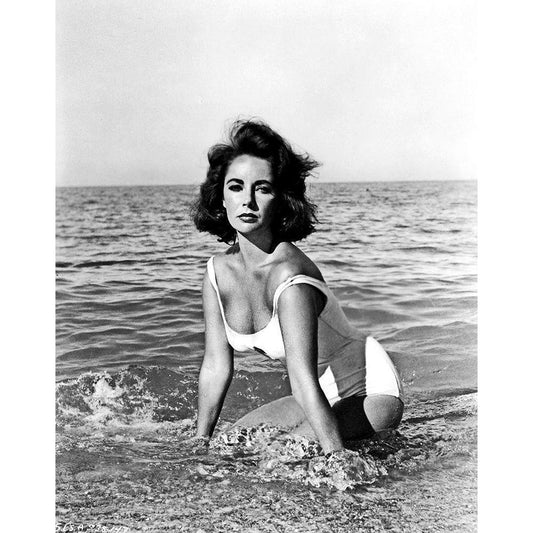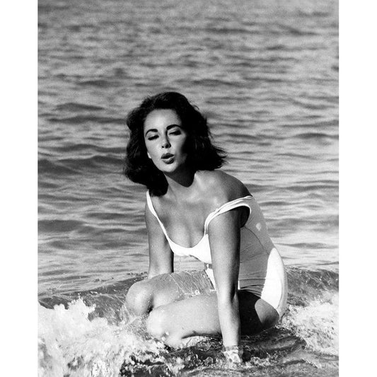 Elizabeth Taylor - In the surf Black Modern Wood Framed Art Print by Hollywood Photo Archive