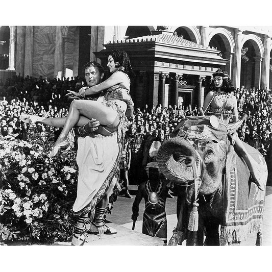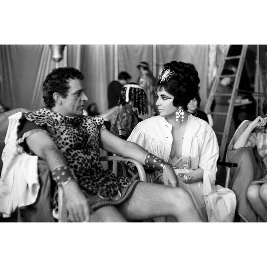 Behind the Scenes - Elizabeth Taylor - Cleopatra Black Modern Wood Framed Art Print by Hollywood Photo Archive