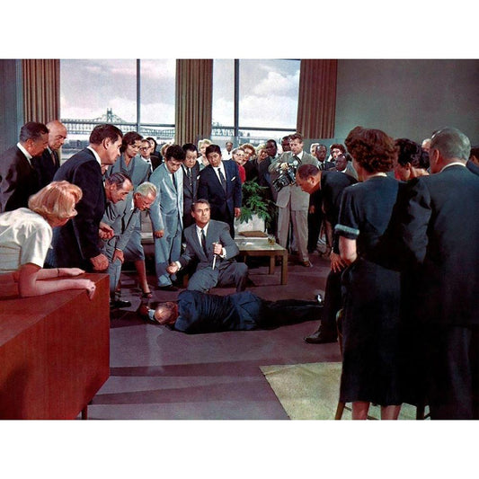 Cary Grant - North By Northwest Black Modern Wood Framed Art Print by Hollywood Photo Archive