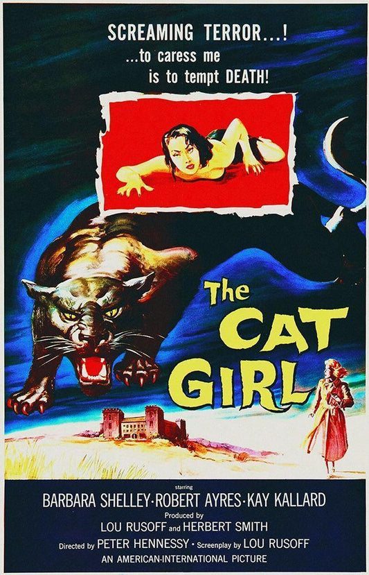 The Cat Girl White Modern Wood Framed Art Print with Double Matting by Hollywood Photo Archive