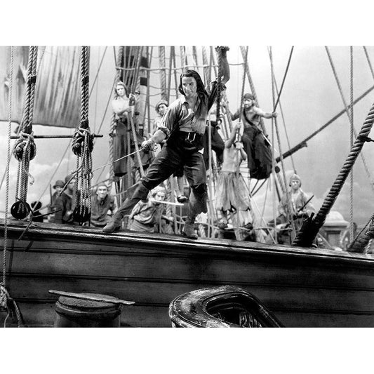 Errol Flynn - Captain Blood Black Modern Wood Framed Art Print by Hollywood Photo Archive