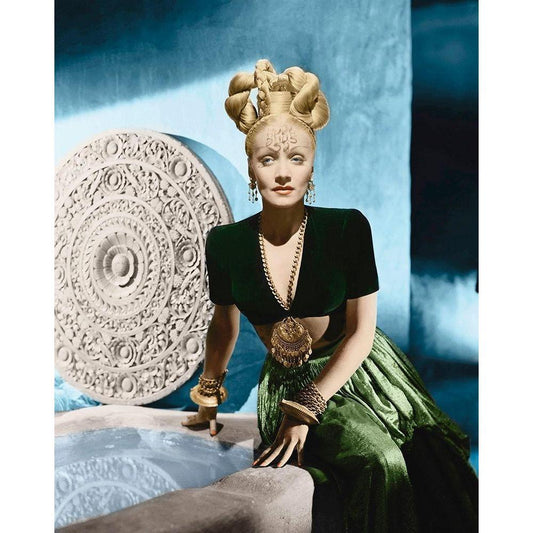 Marlene Dietrich - Golden Earrings Black Modern Wood Framed Art Print by Hollywood Photo Archive