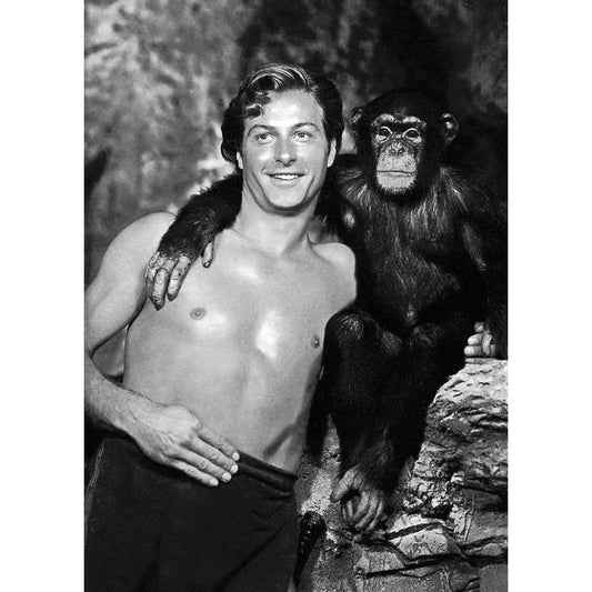 Lex Barker with Cheeta Black Modern Wood Framed Art Print by Hollywood Photo Archive