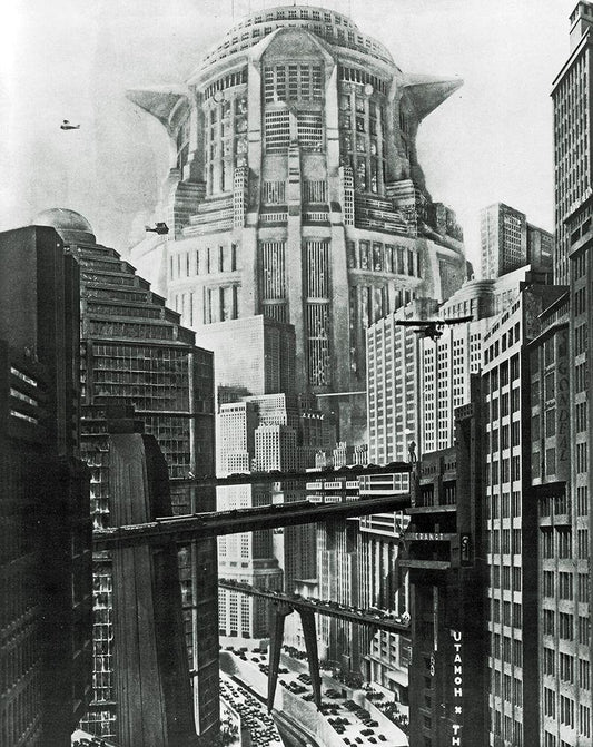 Metropolis - Production Still White Modern Wood Framed Art Print with Double Matting by Hollywood Photo Archive