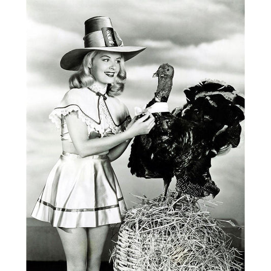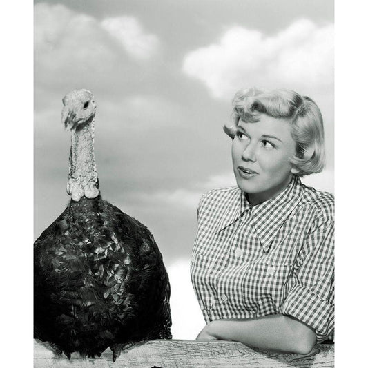 Doris Day with a Thanksgiving Turkey Black Modern Wood Framed Art Print by Hollywood Photo Archive
