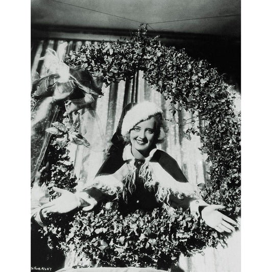 Bette Davis Christmas Wreath Black Modern Wood Framed Art Print by Hollywood Photo Archive