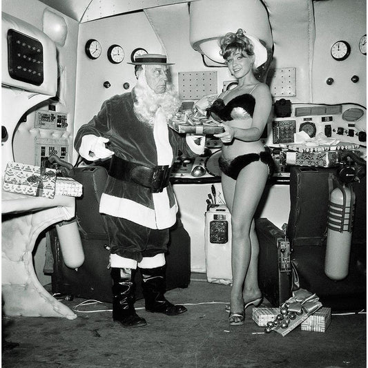 Buster Keaton - Christmas Black Modern Wood Framed Art Print by Hollywood Photo Archive