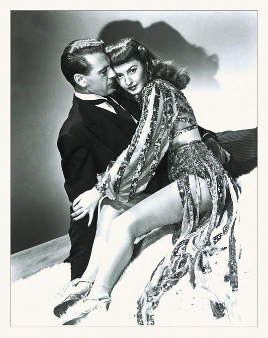 Ball of Fire - Promotional Still - Gart Cooper and Barbara Stanwyck White Modern Wood Framed Art Print with Double Matting by Hollywood Photo Archive