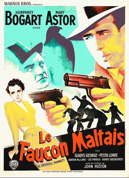 French - The Maltese Falcon White Modern Wood Framed Art Print with Double Matting by Hollywood Photo Archive
