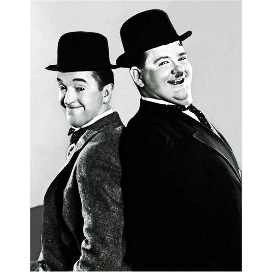 Laurel and Hardy - Portrait, 1933 Black Modern Wood Framed Art Print by Hollywood Photo Archive